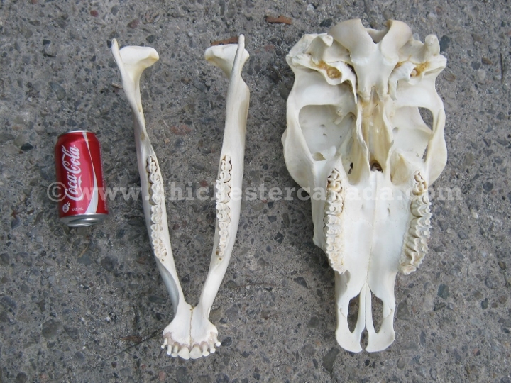 Cow SkullsSee the open skull and a size comparison with a soda can See the profile, the top and the back of the skull
