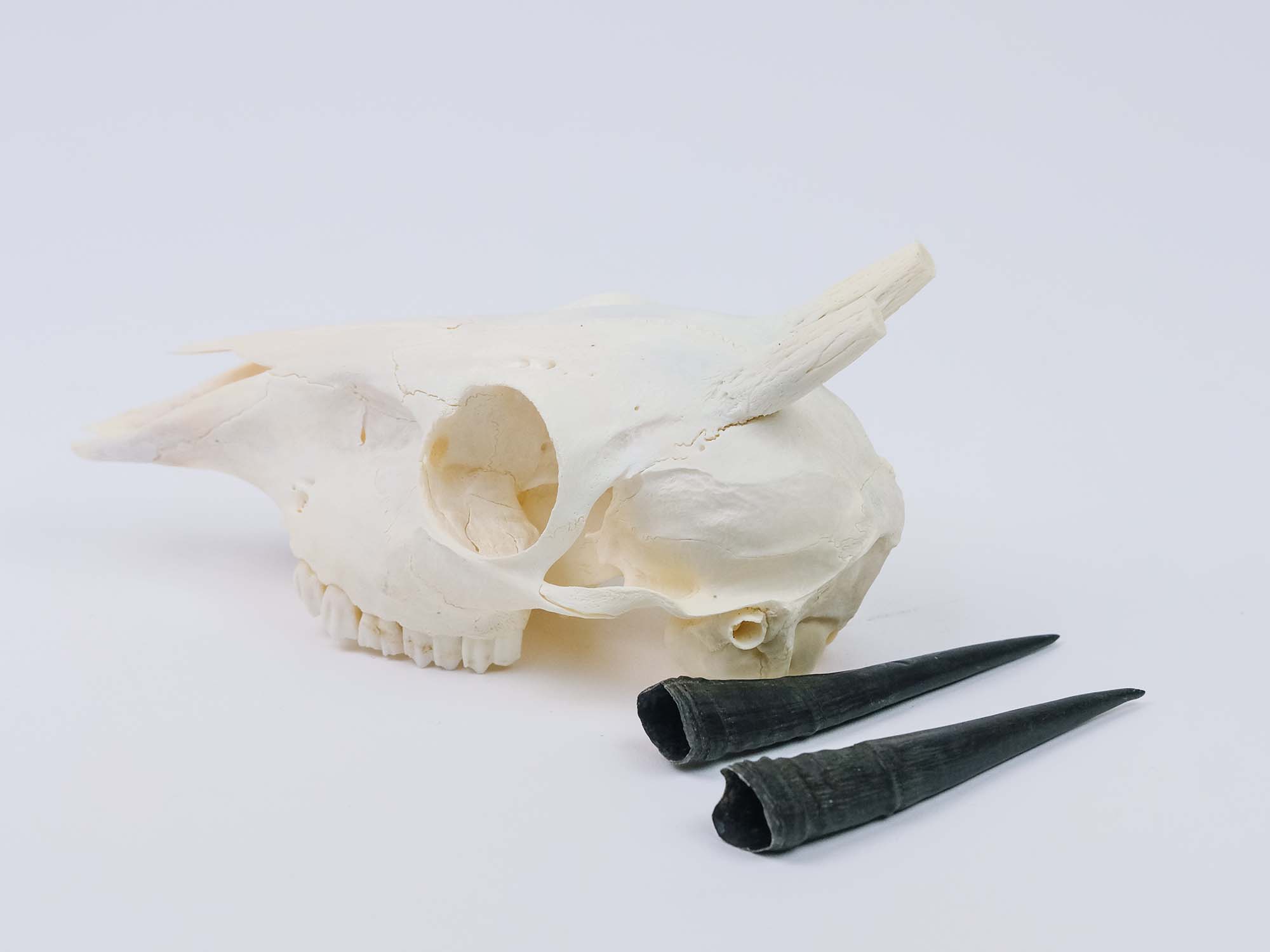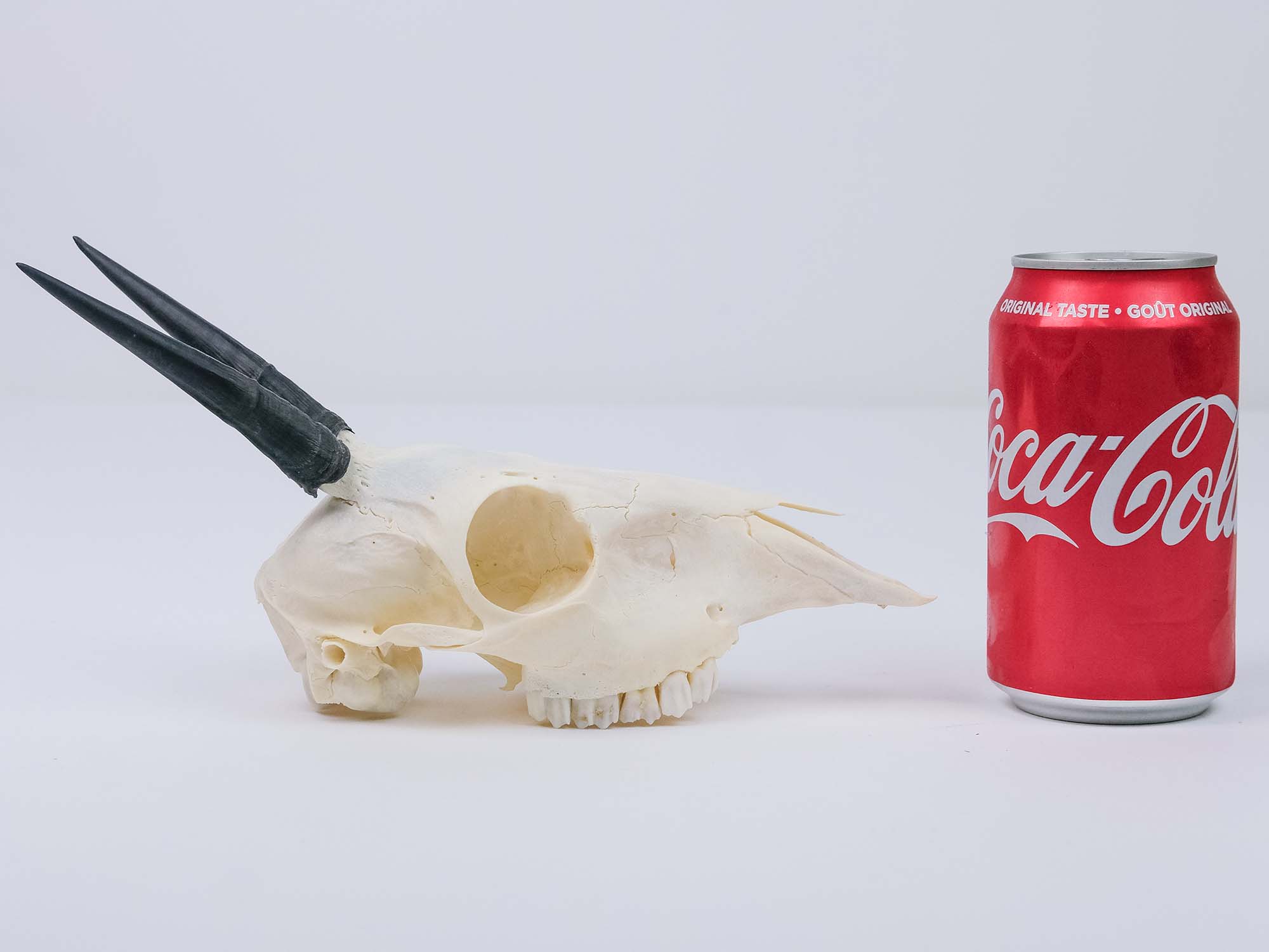 We have a limited number of cleaned gray duiker skulls. Also known as common duiker or bush duiker, they are a small antelope with small horns found in Africa.