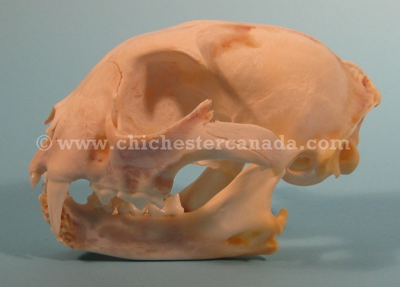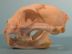 We have a limited number of Canadian lynx skulls. A random skull measures 6" long, 5" wide and 3.5" high, and weighs 0.2 lbs.