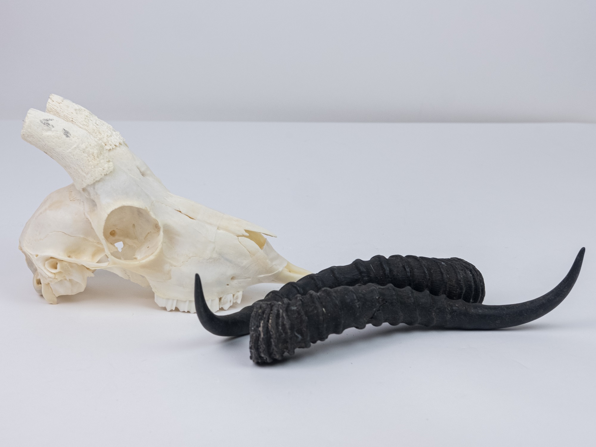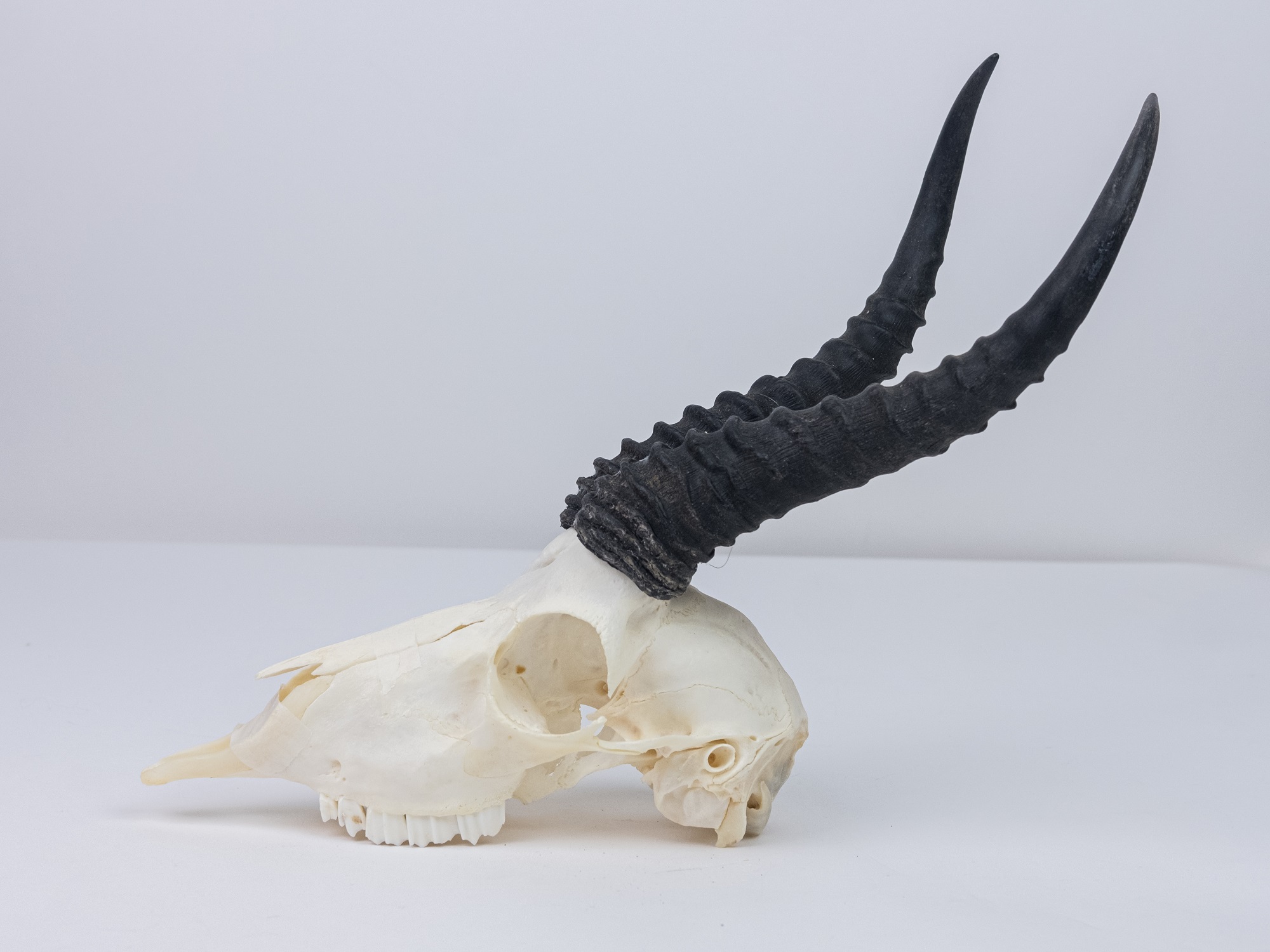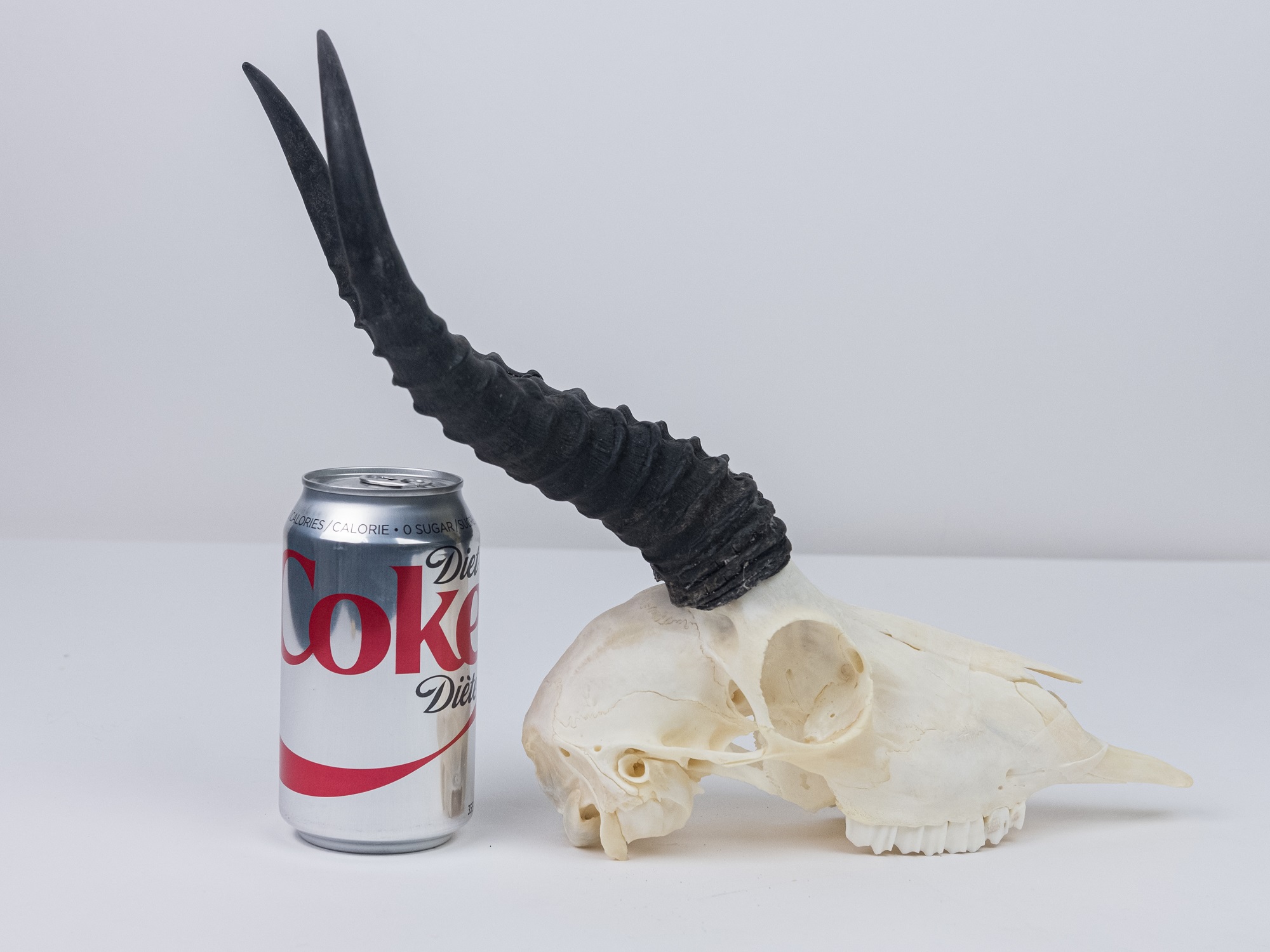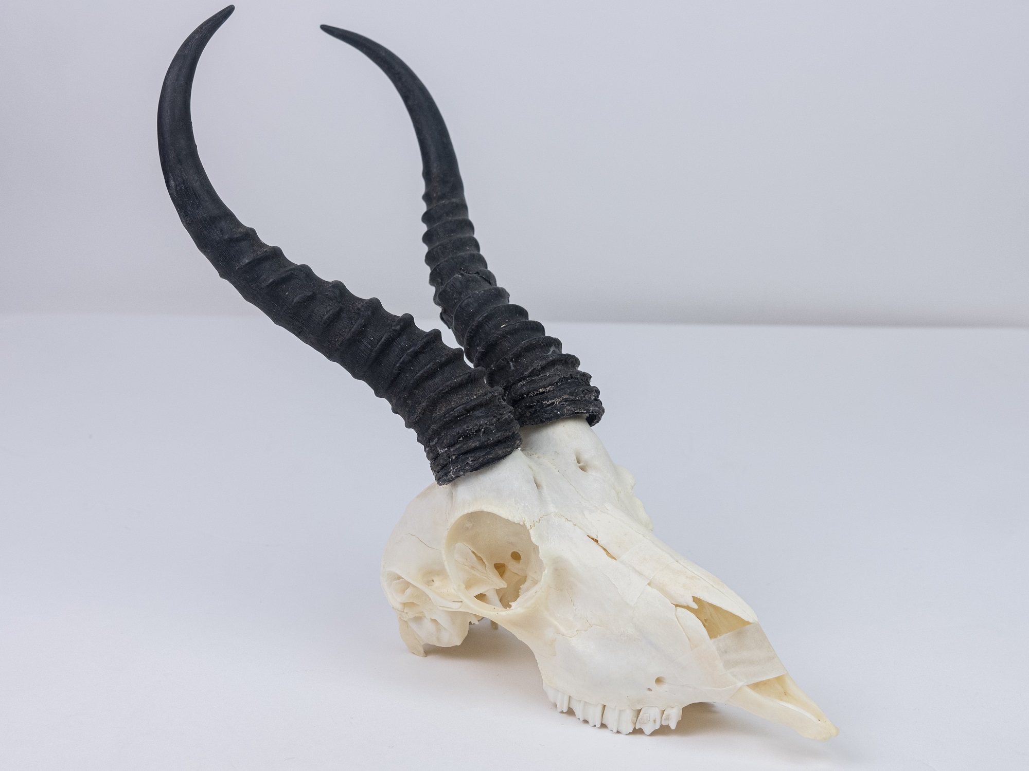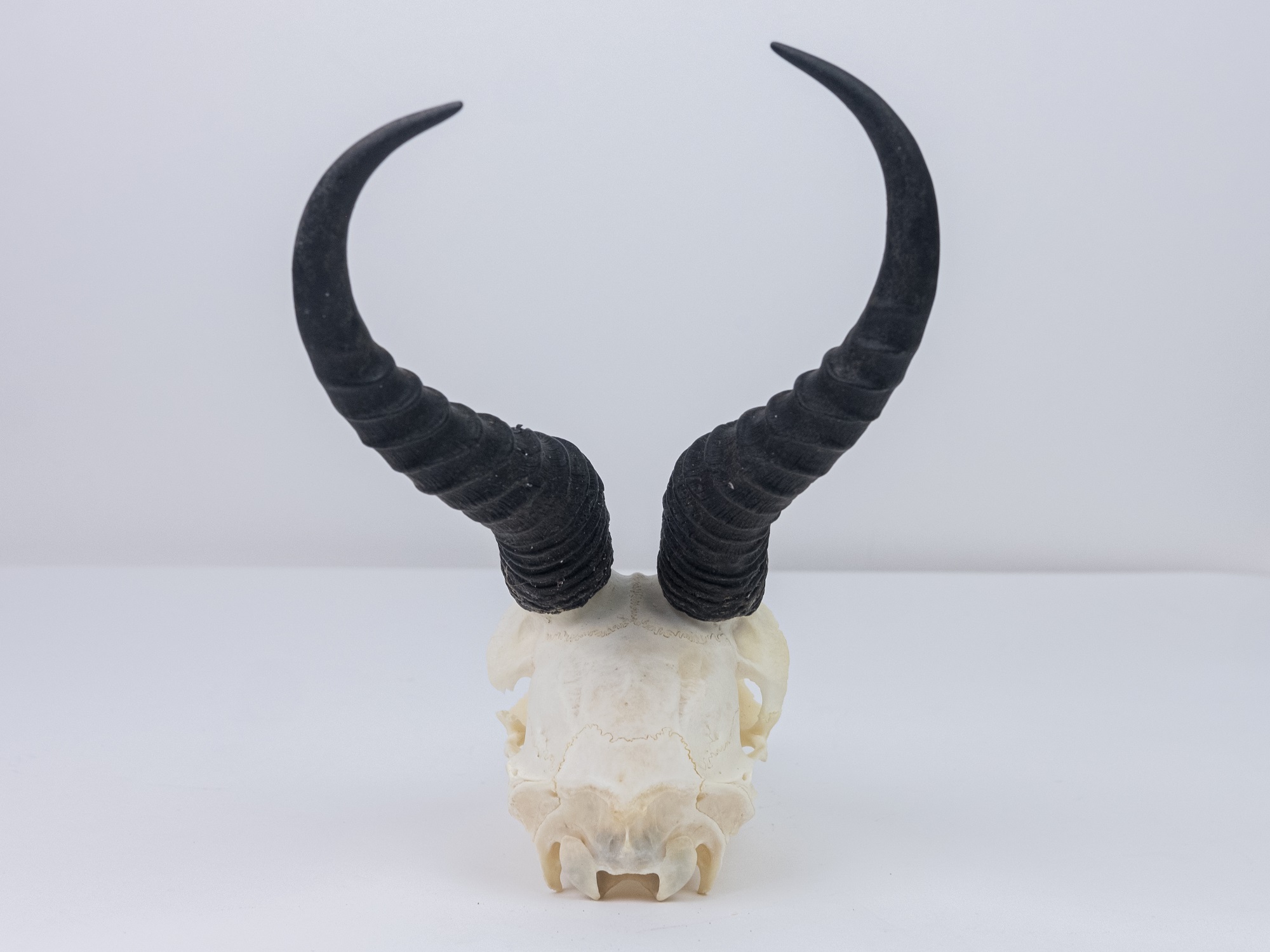 This is a professionally cleaned springbok skull with horn caps but with no lower jaws. Note that they will vary in horn size, shade and shading, and may have imperfections.