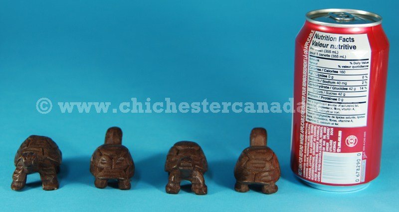 The Small wooden turtles are approximately 5 to 6 cm long, 2.5 to 3.5 cm wide, and 2.5 to 3.5 cm tall.