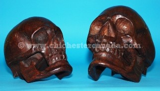 These one-of-a-kind wooden skulls were handcarved by artisans in Ecuador.